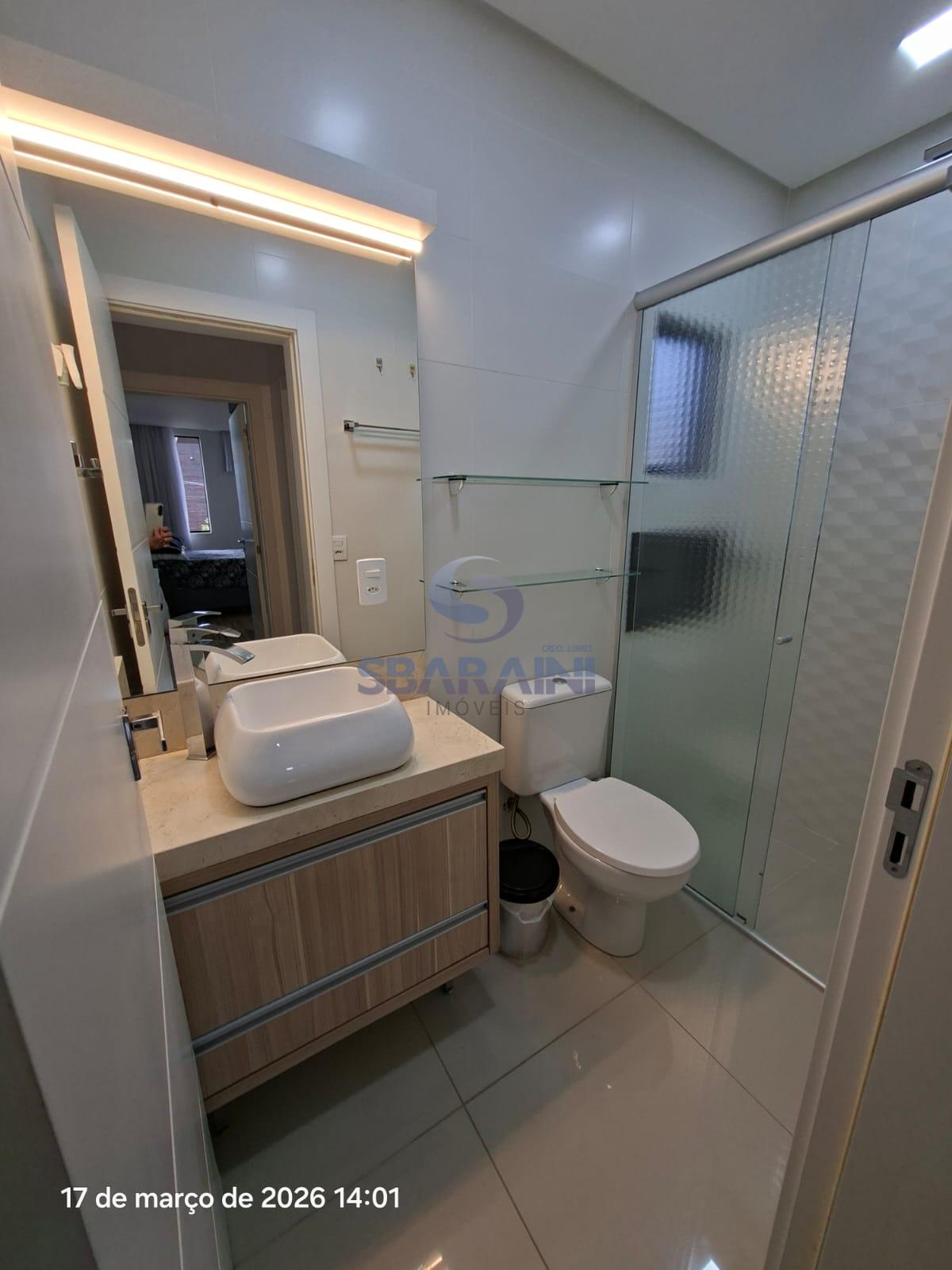 01 Suíte com banheira, sacada, armários embutidos e ar condicionado.