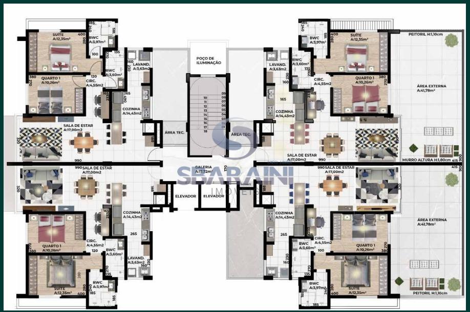 - Vídeo porteiro com monitor em cada apartamento e salão de festas;